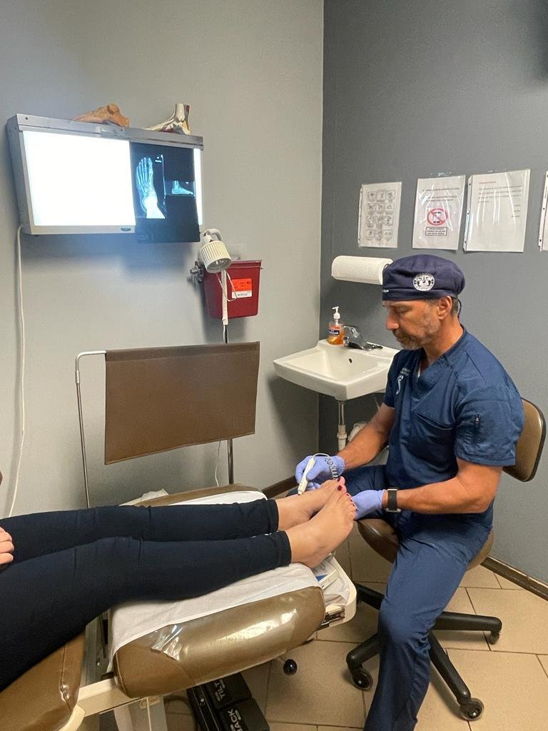 La podiatría a la atención, diagnóstico, tratamiento y cuidado de las afecciones del pie. El podiatra es un profesional de la salud responsable del examen diagnóstico, prevención, tratamiento y cuidado de las condiciones y funciones del pie humano; desarrollando procedimientos quirúrgicos, prescribiendo dispositivos o aparatos correctivos, recetando y/o administrando medicamentos, así como modalidades de medicina física y rehabilitación para tratar las afecciones de los pies. Especialistas Certificados en cuidado de heridas del pie diabético.